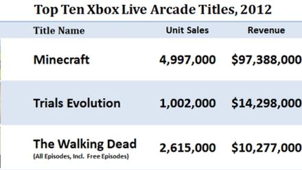 Organizacja FADE (Forecasting & Analyzing Digital Entertainment) opublikowała dane, dotyczące dziesięciu gier z Xbox Live Arcade, które przyniosły w minionym roku największe zyski. Niespodzianek nie brakuje, choć z pewnością nie możemy zaliczyć do nich zwycięstwa Minecrafta. Zestawienie wygląda tak: