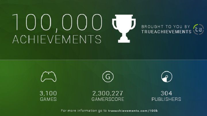 Wczoraj, 31 lipca 2015 roku, blisko dekadę po uruchomieniu tego innowacyjnego rozwiązania, przekroczono granicę 100 000 dostępnych osiągnięć. Na ten wynik złożyło się ponad 3100 gier od 304 wydawców, które dały możliwość zebrania aż 2 300 227 punktów GS. Co ciekawe, tylko jeden gracz na ziemi ma ponad połowę z nich. Powszechne jest narzekanie na osiągnięcia umieszczane w DLC, ale okazuje się, że stanową one jedynie 6,15% całości.