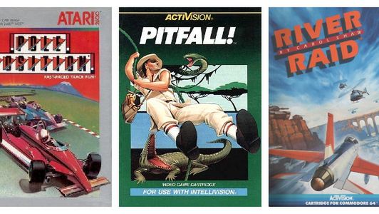 Sprawa jest oczywista. W pierwszym tytule jeździ się bolidem, w drugim... no cóż, ucieka się przed dzikimi zwierzętami, a w trzecim lata niebezpiecznie nisko odrzutowcem. Wszystkie trzy sugerują wartką akcję. Okładka Pole Position nie wymaga dalszego komentarza. W przypadku Pitfall! możemy wywnioskować, że nasz bohater jest kimś pokroju Indiany Jonesa, targa za sobą torbę pełną skarbów i nieobce mu konfrontacje z fauną i florą okolic równika. Tytuł wyraźnie stawią na przygodę. Oczywistą kwestią jest, że w przypadku River Raid zasiadamy za sterami odrzutowca, który ktoś chce nam na złość strącić, czy to przy użyciu śmigłowca, czy czołgu. Liczne uzbrojenie pod skrzydłami naszego samolotu sugeruje, że mimo wszystko będzie to wyrównana walka, a my nie oddamy skóry tak łatwo!