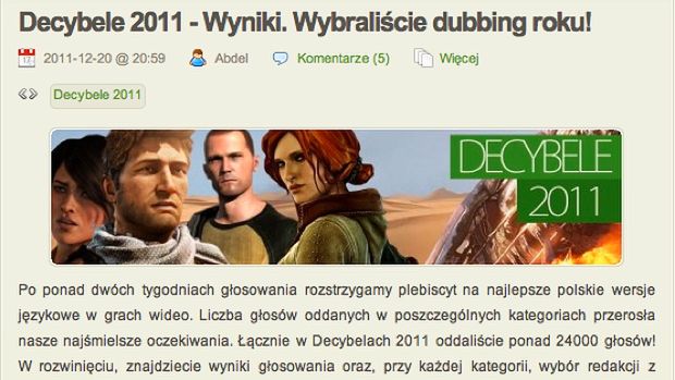 Jeżeli jeszcze nie oddaliście głosu w Decybelach 2011 czyli corocznym plebiscycie na najlepszy dubbing roku przygotowany przez stronę DubScore.pl to... już tego nie zrobicie!