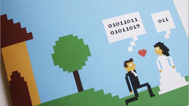 Swoją własną uroczystość ślubną planuję urozmaicić takimi retro-motywami, więc ten przykład podziałał na mnie budująco - nie jestem osamotniony w podobnym, skrzywionym pomyśle. A co Wy sądzicie o takich patentach na imprezach ślubnych? Wolicie tradycyjnego, czy 8-bitowego Mendelssohna?PS. Przejrzałem na szybko ofertę polskich sprzedawców takich zaproszeń - nikt czegoś podobnego w katalogu nie posiada. A może się mylę?