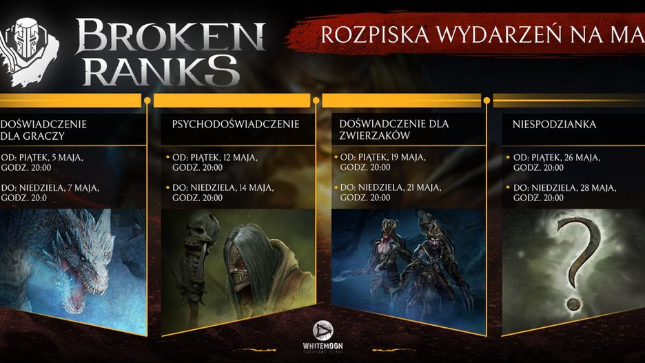 Whitemoon Games szykuje aktywny miesiąc dla swoich graczy. Majowe weekendy w Broken Ranks będą pod znakiem zwiększonego doświadczenia i nie tylko… Twórcy przygotowali jeszcze kilka atrakcji.