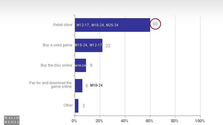 Jak się okazuje większość graczy w USA nie kupuje gier online. Nadal najpopularniejszą metodą zdobycia gry jest wizyta w sklepie. Jestem ciekawe, jak te współczynniki wyglądają u nas. W końcu z jednej strony mamy słabiej rozwiniętą infrastrukturę sieciową i zakupy online nie są aż tak popularne, ale z drugiej strony nie mamy też aż takiej ilości sklepów sprzedających gry w sposób tradycyjny (a przy okazji będących na przyzwoitym poziomie). Nie doczekaliśmy się swojego GameStopu a o Empikach i MM za dużo dobrego nie można powiedzieć, no może poza faktem, że często wpuszczają gry do dystrybucji nieco wcześniej, o ile je mają. No bo przecież sytuacja, że danej pozycji nie ma jest dość częstym przypadkiem, prawda?