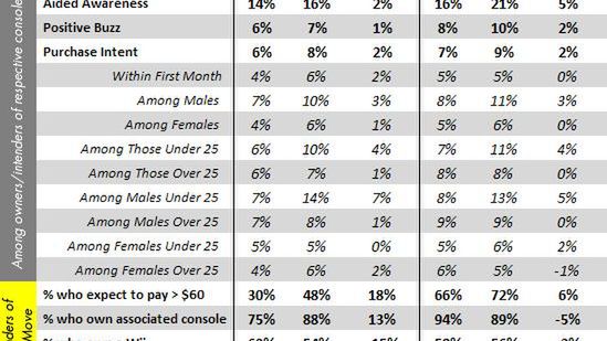 Stosowne badania przeprowadził ośrodek Ipsos OTX MediaCT. Na poziomie ogólnym zmieniło się niewiele. W jednym i w drugim przypadku zainteresowanie kupnem zwiększyło się po E3, w stosunku do stanu sprzed targów, o 2 punkty procentowe i wynosi 8% dla Move'a i 9% dla Kinecta. Nadal są to liczby raczej niewielkie.