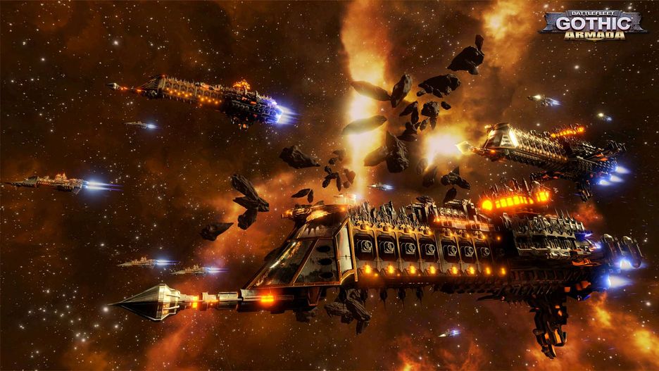 Chór astropatyczny na moim okręcie odebrał rozkaz sprawdzenia jednego z imperialnych przyczółków, z którym od dłuższego czasu nie było kontaktu. Gnaliśmy przez odmęty Osnowy, chronieni jedynie cienkim bąblem pola Gellera, prowadzeni przez naszego Nawigatora i jego trzecie oko, jedną z nielicznych mutacji dopuszczonych w Imperium. W końcu, po kilku godzinach, które w normalnej rzeczywistości trwały cztery miesiące, opuściliśmy Osnowę.Po opuszczeniu Osnowy czujniki od razu wykryły stację kosmiczną, zatem wydałem rozkaz zbliżenia się do niej. Imperator faktycznie musi nad nami czuwać, bo w ostatniej chwili wykryliśmy pole minowe, które udało się ominąć dzięki szybkiemu zwrotowi. W końcu dotarliśmy do celu. Czujniki nie wykazały co prawda znaków życia na pokładzie stacji, ale nie chciałem ryzykować. Imperator chroni, ale nie zaszkodzi mieć też załadowanego boltera, mówi stare przysłowie. Wystrzeliliśmy zatem torpedy abordażowe i ponownie zmówiłem modlitwę dziękczynną. Stacja pełna była kultystów Chaosu, którzy szybko wybili moich żołnierzy. Oddali życie w Jego służbie, za co spotka ich zasłużona nagroda. Nie było jednak czasu na ich opłakiwanie, bo okrętem nagle coś wstrząsnęło, niedaleka platforma obronna aktywowała się i otworzyła do nas ogień. Seria szybkich rozkazów i odpowiedzieliśmy tym samym.Makrobaterie bez większych problemów rozprawiły się z zagrożeniem, ale już pojawiło się nowe. Z pobliskiej chmury gazów wyleciały się dwa eskortowce zdrajców. Tym razem nie daliśmy się zaskoczyć i po krótkiej wymianie ognia jeden z okrętów został rozerwany na strzępy, a drugi zdążył w ostatniej chwili uciec w Osnowę. To był zaledwie początek, bo po chwili ze spaczonej przestrzeni wyłoniła się olbrzymia flota Chaosu.Rozpoczęła się inwazja na sektor Gothic. Niech Imperator ma nas w swojej opiece.Tak wygląda pierwsza, będąca jednocześnie samouczkiem misja w Battlefleet Gothic: Armada. Po jej ukończeniu kapitan Spire zostaje awansowany do stopnia admirała i otrzymuje dowodzenie nad flotą sektora Gothic. No, flotą to trochę za dużo powiedziane, przynajmniej na początku rozgrywki, bo zaczynamy z lekkim krążownikiem i wystarczającymi zasobami, by kupić jego siostrzaną jednostkę. Taki stan rzeczy nie trwa jednak długo, bo już po kilku misjach odblokowujemy kolejne okręty, które możemy wcielić do służby.W Armadzie, podobnie jak w figurkowym pierwowzorze, sami kompletujemy flotę. Zaczynamy faktycznie skromnie, od wspomnianych już lekkich krążowników i eskortowców, by w miarę osiągania kolejnych poziomów naszego admirała odblokowywać potężniejsze jednostki, od krążowników po olbrzymie pancerniki klasy Retribution. Okręty możemy oczywiście modyfikować i ulepszać. Mocniejszy pancerz, lepsze osłony, do tego umiejętności specjalne i wyposażenie unieruchamiające wszystkie statki, bomby grawitacyjne, czy sondy identyfikujące wrogie jednostki. Każdy okręt ma też swoją załogę, która również zdobywa doświadczenie. W ten sposób na przykład awansowanie Nawigatora zmniejsza ryzyko zaginięcia statku w Osnowie, jeśli postanowimy opuścić pole bitwy.Nie ma natomiast możliwości zmiany podstawowego uzbrojenia, co z jednej strony trochę rozczarowuje, ale z drugiej nie powinno nikogo dziwić. W świecie Warhammera 40,000 każdy okręt to licząca sobie setki, a czasem tysiące lat jednostka, a jej nadmierne modyfikowanie może zostać uznane za herezję przez Kapłanów Maszyny. Zamiast tego poszczególne klasy występują w kilku wariantach, także każdy znajdzie coś dla siebie.