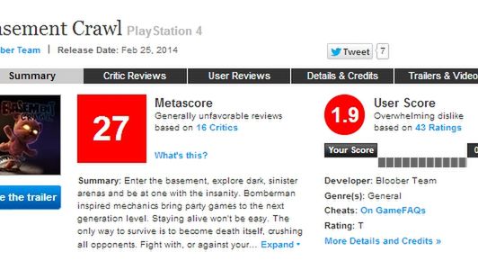 Basement Crawl - pierwsza polska produkcja na PS4 - powstawało długo i za spore pieniądze. W dniu premiery zostało przesunięte na późniejszą, a mimo to otrzymaliśmy grę słabą, a w dodatku pełną błędów uniemożliwiających rozgrywkę. Na pewno znaleźli się tacy, którym się spodobała - do każdej gry się tacy znajdą. Ale jak widać po ocenach, za wielu ich nie było.