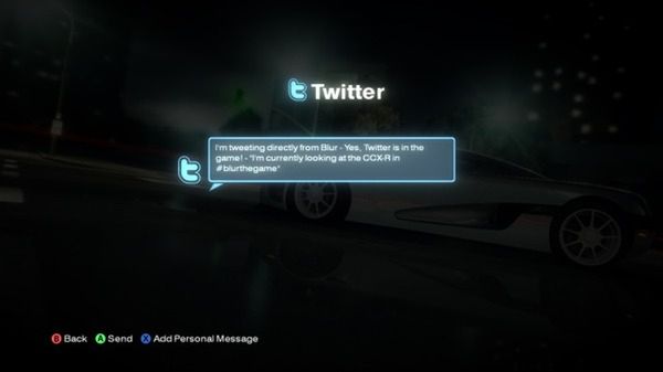 Grając w Blur będziemy mogli ćwierkać. To chyba pierwsza gra, która na 360 udostępnia nam Twittera.