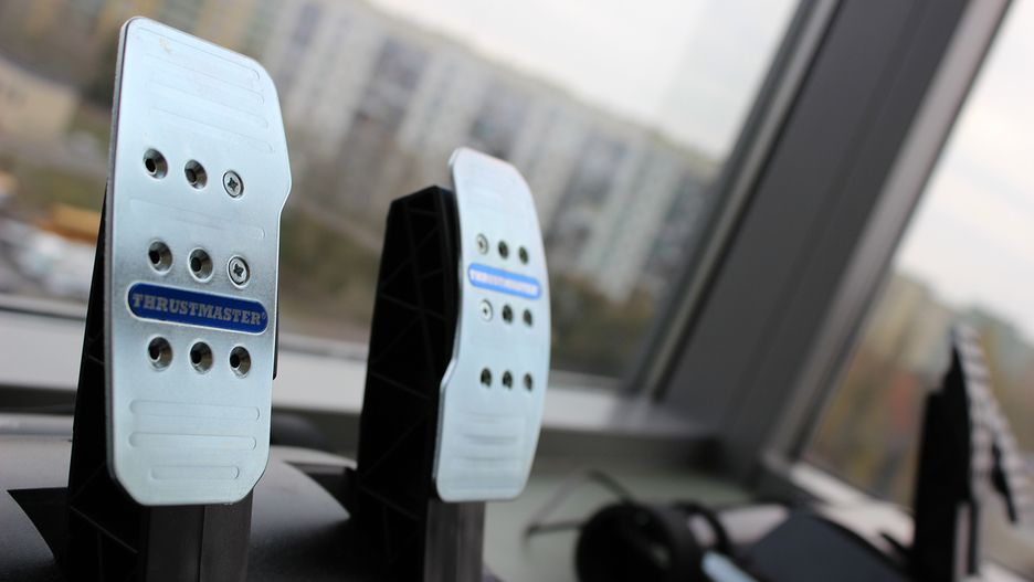 Słów jeszcze kilka o samych stojakach Wheel Stand Pro, na których testowałem obie kierownice. Niektórzy lubią przyczepiać kierownice do biurek, ale podczas grania w „salonie”, gdzie takiego mebla nie ma, powstaje problem. Nienawidzę przeciągać stołu, choć swego czasu zdarzało mi się rozstawiać deskę do prasowania - niestety taka konstrukcja wygląda paskudnie. W takim wypadku tego typu stojak wydaje się idealnym rozwiązaniem. W zależności od wielkości i modelu kierownicy dobierzecie odpowiedni rozmiar - T80 dostało stelaż z mniejszą półeczką, T300 RS z większą, przez co przykręcone kierownice wyglądały na dopasowane do swoich konstrukcji. Stojaki są ciężkie i stabilne, mają też bardzo fajne gumki, na których stawiane są podłogi z pedałami. Dzięki temu znika problem ślizgania podczas przyciskania pedałów stopami. Mi to w zupełności wystarczyło, ale możecie też przyczepić podłogi z pedałami specjalnym paskiem - będzie jeszcze stabilniej. Same stojaki można również w prosty sposób złożyć (niczym scyzoryk), dzięki czemu cały zestaw łatwiej zmieścicie w szafie lub za łóżkiem. Super rozwiązanie, jeśli oczywiście nie odstraszy Was cena - w zależności od modelu musicie liczyć się z wydatkiem rzędu ok. 300-370 zł. (oficjalna strona producenta).