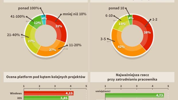 Admini facebookowego profilu Polski GameDev zebrali wyniki ankiety rozesłanej do 26 największych polskich firm i podali je w przyjaznej dla oka formie.