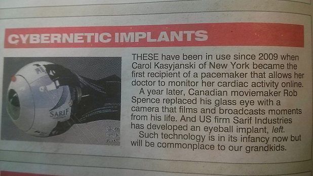 W najnowszym wydaniu brytyjskiego dziennika The Sun pojawiła się krótka notka na temat implantów cybernetycznych. Jednym z przywołanych przykładów jest... firma Sarif Industries, która rzekomo produkuje sztuczne oczy.