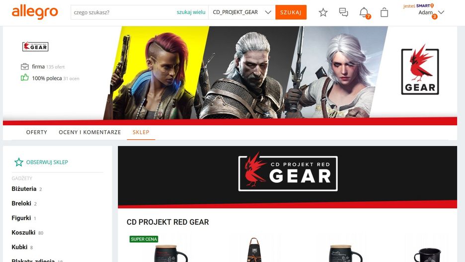 Najważniejsze jest jednak to, że np. osoby korzystające z Allegro Smart mogą zaoszczędzić na wysyłce i zgarnąć gadżety od CD Projekt RED. Mowa tutaj o fantach z serii "Wiedźmin" i oczywiście "Cyberpunk 2077".