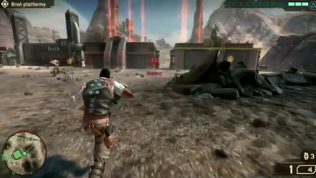 Jak widzicie pierwsze pół godziny zajmuje misja będąca w istocie dużym samouczkiem - przez większość czasu strzelałem biegając pieszo lub jeżdżąc skuterem po pustymi. Poznałem też podstawy budowania swojej bazy, a na koniec nawet udało się wsiąść do Hawka, wielkiego robota zmieniającego się w samolot... no, pojazd latający.