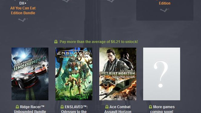 Przekroczenie średniej wpłaty wymagane jest do uzyskania Ridge Racer: Unbounded, Enslaved, Ace Combat Assault Horizon i gier-niespodzianek. Dark Souls: Prepare to Die Edition czai się za progiem 10 dolarów.