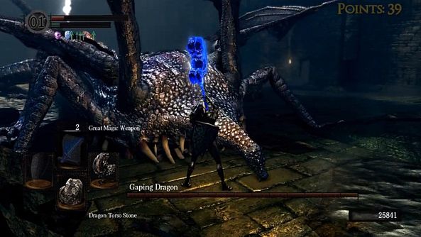No dobrze, nie zapominajmy, że vageta311 zrobił to pewnie dużo więcej razy, zanim znalazł optymalny sposób. Co nie zmienia faktu, że wywołuje niesamowite wrażenie, gdy jednym ciosem kładzie koszmary, które wielu graczy przyprawiły o połamanie padów. Zwłaszcza, że ma niewysoki poziom (40-50). Po prostu odpowiednio rozwija siłę i inteligencję, na której opiera się czar do wzmacniania broni, ma też zapewne ulepszoną rękawicę do rzucania czarów Piromanty.