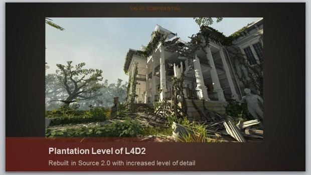 Widzimy na nim slajdy z obrazkami, prezentującymi rzekomo poziom Plantation z Left 4 Dead 2, odtworzony na silniku Source 2.0. Lata rozmaitych rewelacji "wyciekających" z Valve powinny nauczyć nas ostrożności w dociekaniu, co to oznacza.