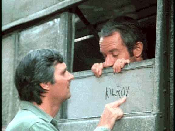 Dopiero po paru godzinach wrócił do mnie obrazek z serialu "M*A*S*H", gdzie Sokole Oko na brudnym oknie, z którego wychyla się B.J. Hunnicutt pisze palcem "Kilroy". Oglądając serial lata temu, nie miałem pojęcia co ów napis znaczy.