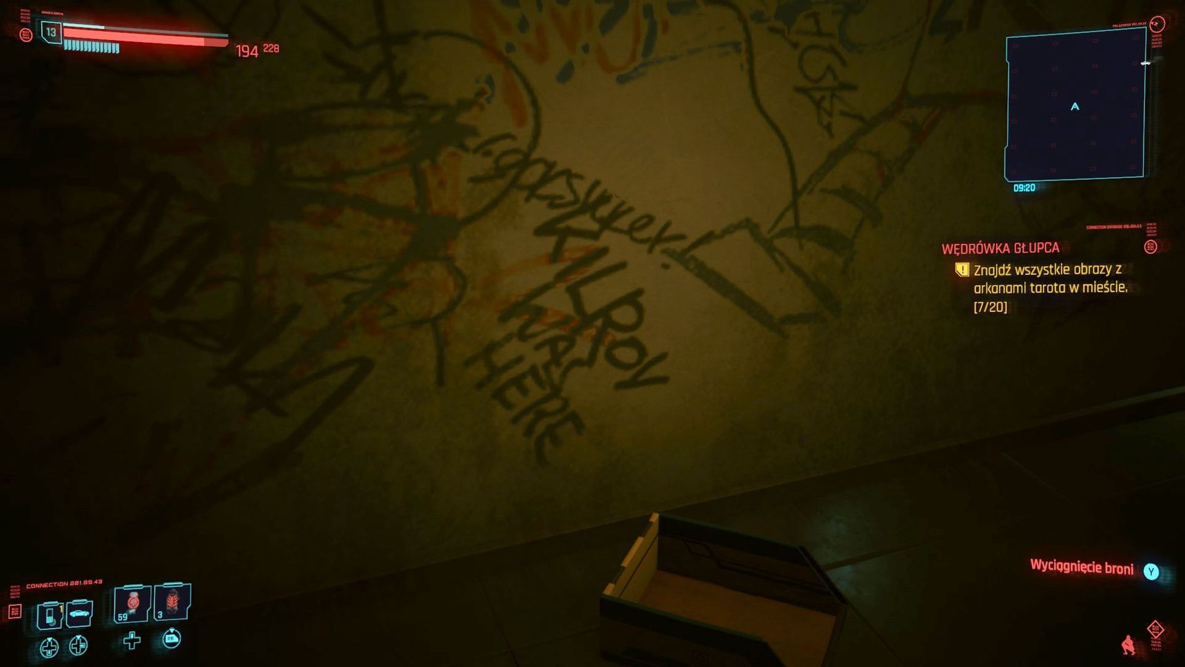 Na intrygujący i wyróżniający się z zalewu nieczytelnych napisów/rysunów na ścianie trafiłem w trakcie poszukiwań kart Tarorta w Night City - jedno z ciekawszych i zmuszających do zwiedzenia bardzo odległych zakątków miasta zadań pobocznych.