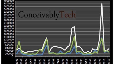 Wszyscy kochamy wykresy. No, prawie wszyscy. Tym razem mamy zestawione ze sobą dane sprzedaży konsol w USA w poszczególnych miesiącach od swojej premiery aż do marca 2010 (wg NPD).