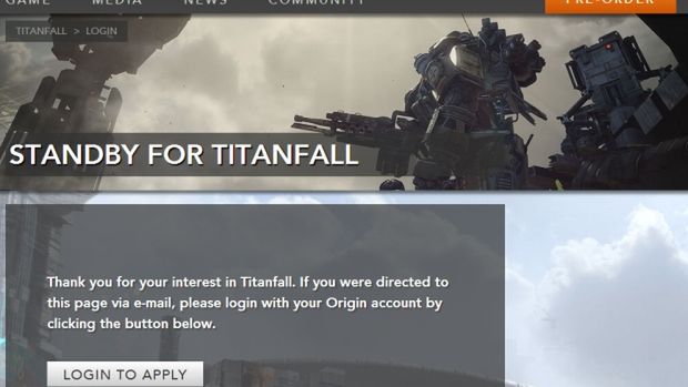 Treść zachęca do udania się na oficjalną stronę: www.titanfall.com/standby-for-titanfall (obrazek powyżej) Tam można zalogować się danymi Origin, by ustawić się kolejce do testów wersji alfa gry. Wybrani z zarejestrowanych otrzymają dostęp do niej w wersji na Xbox One. Co jest o tyle dziwne, że testy wersji alfa w styczniu to dość późno, skoro premierę zaplanowano na 11 marca.