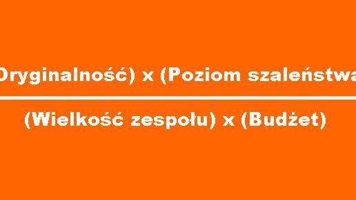 PS Mała adnotacja - "poziom szaleństwa" z wzoru to w oryginale "wildness", a więc dosłownie "dzikość". Słowo "wild" w stosunku do pomysłu (idea) oznacza jednak "ryzykowność", "dziwaczność", "niewiarygodność". Ciężko było to przetłumaczyć, ostatecznie, po konsultacjach z redakcji zdecydowaliśmy się na taką wersję. Chyba dobrze oddaje sens, zwłaszcza, że w języku polskim pomysł może być przecież "szalony".