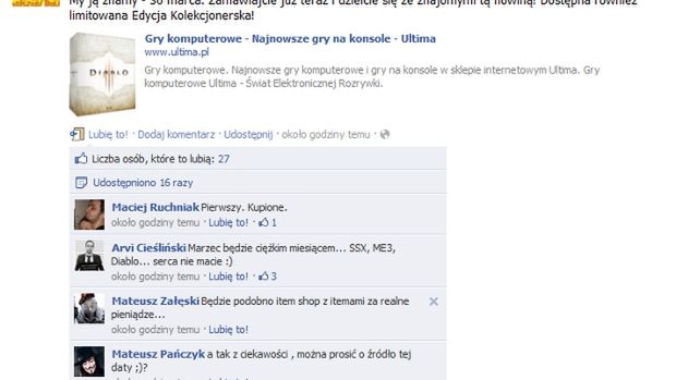 Popularny polski sklep internetowy zakomunikował na swoim profilu na Facebooku, że jedna z najbardziej oczekiwanych gier ostatnich lat ujrzy światło dzienne 30 marca, a więc dzień przed końcem pierwszego kwartału 2012 roku. Jak się dowiedzieliśmy, informacja pochodzi z bliżej nieokreślonego źródła Ultimy i jest niemal w stu procentach pewna. Jeżeli to prawda, Blizzard na dniach powinien potwierdzić tę datę - do 30 marca pozostały niecałe dwa miesiące i wypadałoby przygotować świat odpowiednio wcześniej na wielką premierę.
