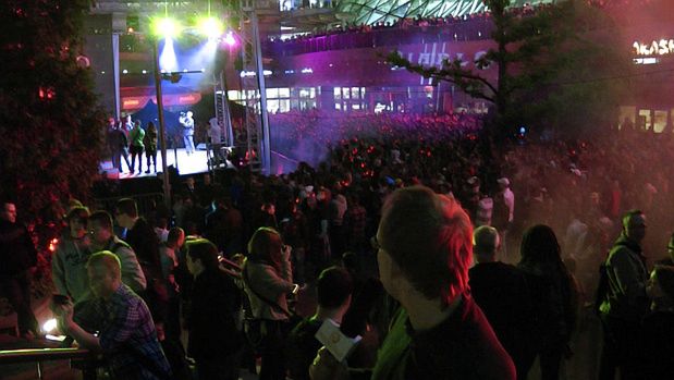 Jak szacował ok. 21:00 prowadzący imprezę Michał Figurski, pod ustawioną przy Złotych Tarasach sceną mogło zgromadzić się nawet 2000 osób, a tłum stał też w kolejce do sklepów i na chodnikach dookoła centrum handlowego. Jak poinformował nas dziś rano przedstawiciel wydawcy i organizatora, firmy CD Projekt: