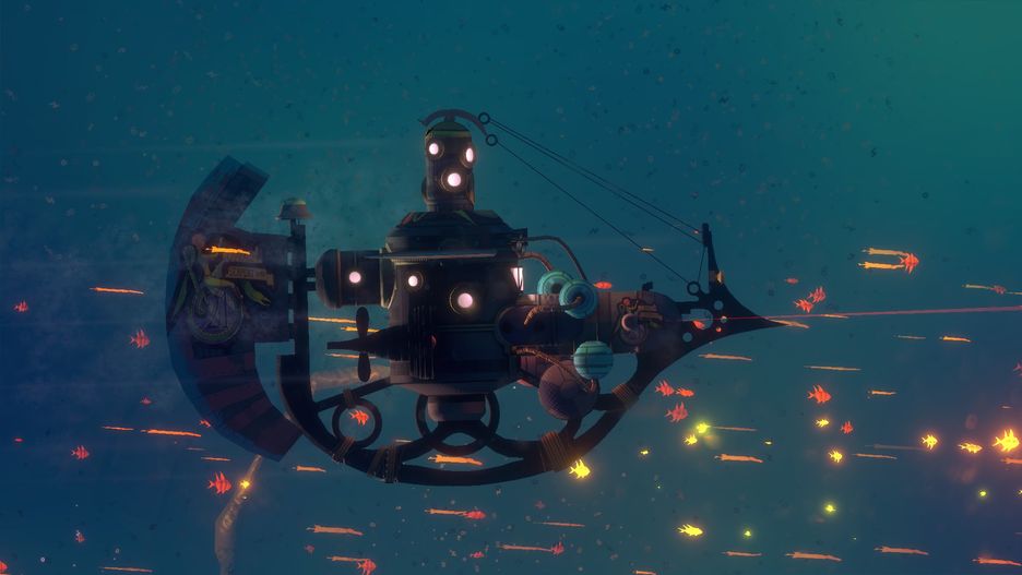 To mało, a w przypadku takiej gry aż prosi się o jakieś większe stworzenia, na które można by zapolować albo przed którymi musielibyśmy uciekać. A widać, że twórcy mieli tutaj dobre pomysły. Jednym z bossów jest gigantyczny krab, który zamieszkał we wraku zatopionego pancernika. Kiedy do niego dopływamy, niczego nieświadomi, a on nagle wstaje i zaczyna poruszać się na tych swoich odnóżach, wrażenie jest niesamowite. Dlaczego nie dano nam możliwości polowania na takie kraby?Jakaś forma zwierząt, z którymi można wejść w interakcję, pojawia się dopiero w trzecim, ostatnim, obszarze gry, ale ani nie wiadomo czy to faktycznie żywe stworzenia, ani zupełnie nie pasują one do klimatu morskich głębin. Sam element survivalowy nie jest dużo lepszy. Mamy dwa surowce, powietrze i jedzenie, o poziom których musimy dbać. Przez 15 godzin spędzonych z grą załoga udusiła mi się tylko raz, a jedzenia nie zabrakło nigdy.Zresztą cała eksploracja dorzucona jest na siłę, bo nie niesie za sobą praktycznie żadnych ciekawych elementów. Dokujemy do nielicznych osad, częściej natomiast do wyglądających tak samo, porzuconych stacji badawczych czy wraków, uzupełniamy zapasy powietrza, zbieramy fanty i płyniemy dalej.Brakuje czegoś, co zachęciłoby do odkrywania świata i poznawania jego, mimo wszystko ciekawej, historii. Czasem, w punktach orientacyjnych, trafimy na fragment mapy z jakimś skrawkiem informacji, ale znowu zabrakło czegoś, co idealnie pasowałoby do tej scenerii - dzienników kapitanów, załóg czy mieszkańców głębin.To może chociaż historia jest warta uwagi? Jak najbardziej. Chce się ją poznawać, znaleźć odpowiedzi na pytania: czy przebijemy się na powierzchnię? Co nas tam czeka? Kim jest ten bóg, który nam przebaczył? I te odpowiedzi dostajemy, tylko dotarcie do nich jest niepotrzebnie przedłużaną męczarnią.Walka miała być trudna, wymagać od gracza myślenia i stosowania taktyk. W praktyce jest nudna, niestanowiąca jakiegokolwiek wyzwania i powtarzalna - ograniczająca się do celowania w znacznik i naciskania spustu. Po jakimś czasie zwyczajnie ją sobie darowałem, chyba że wymagała tego fabuła. Szczególnie po tym, jak pieniądze przestały być problemem i wszystko mogłem kupić.Generalnie widać, że ktoś chciał, by Diluvion był grą trudną, ale zabrakło pomysłu. Potyczki z bossami stanowią pewne wyzwanie, lecz wynika ono z faktu, że jednostki te naszpikowane są wieżyczkami i jedyną mechaniką jest tu rozwalenie ich za pomocą torped. Ostatnia walka wygląda natomiast jak żywcem wyjęta z jakiejś japońskiej gry, którą Adam Piechota kisi na półce. Wszystko szybko, kolorowo, a ty wal z super lasera.Nie wyszło też z mapą. W założeniach cała nawigacja ma opierać się na punktach orientacyjnych i kompasie, bez pokazywania pozycji łodzi. Ale po pierwsze mamy te złote rybki, a po drugie - kompas i tak wyświetla wszystkie odkryte miejsca, więc wystarczy skierować dziób w odpowiednią stronę.W końcu, skoro już jesteśmy rzucani w otwarty świat, przydałoby się zapełnić go dodatkowymi zadaniami, których też zabrakło. W pewnym momencie trafiłem do pełnego uchodźców miasta. Konkretnie było ich dwóch plus ze czterech mieszkańców. Ponoć mają wielki problem z żywnością, więc dlaczego nie zlecić mi rozwiązania tej kwestii? Ja chętnie pomogę. Pominę już fakt, że lokalny handlarz żarcia ma w bród.Grając w Diluvion, ciężko było mi powstrzymać się od porównań z Sunless Sea i widać, że twórcy też wzorowali się na tej grze. Tylko jak tytuł Failbetter Games miał bogaty świat, masę dodatkowych zadań i aktywności i był grą wymagającą, tak Diluvion jest rozdymką. Na pierwszy rzut oka wielki i napęczniały, po bliższym poznaniu tylko pełen powietrza.Gdyby była to interaktywna opowieść z elementami zręcznościowymi albo symulator chodzenia z tym, że zamiast na piechotę, poruszalibyśmy się łodzią podwodną, mielibyśmy świetną grę. Z przepiękną, faktycznie nawiązującą do twórczości Verne'a, grafiką i przyjemnie przygrywającą, choć nieco monotonną muzyką.Zamiast tego dostaliśmy jakąś dziwną hybrydę, w której praktycznie nic nie działa. Twórcy chwalili się zarządzaniem załogą, gdzie w praktyce wygląda to tak, że po prostu przydzielamy marynarzy do stanowisk, co daje nam bonusy do statystyk. Koniec. Rozmowy z podwładnymi ograniczone są do jednego, dwóch pytań, które nie pozwalają poznać ich historii czy motywacji. Jedynie czasem trzeba przeklikać się przez dialog, by pchnąć fabułę. I właśnie na tym ta gra polega - na pchaniu fabuły.