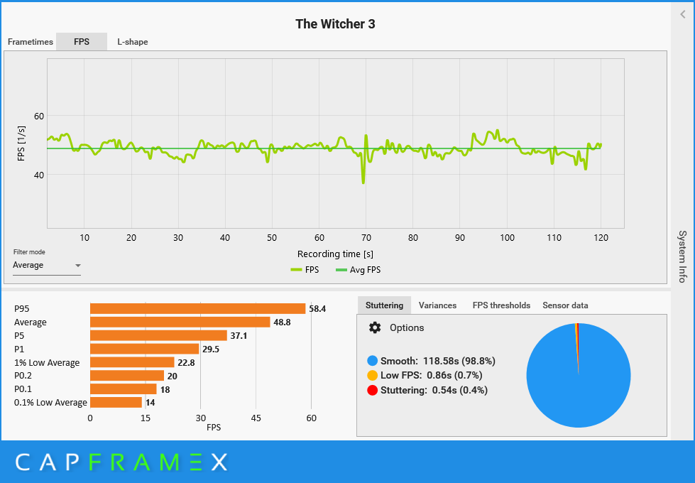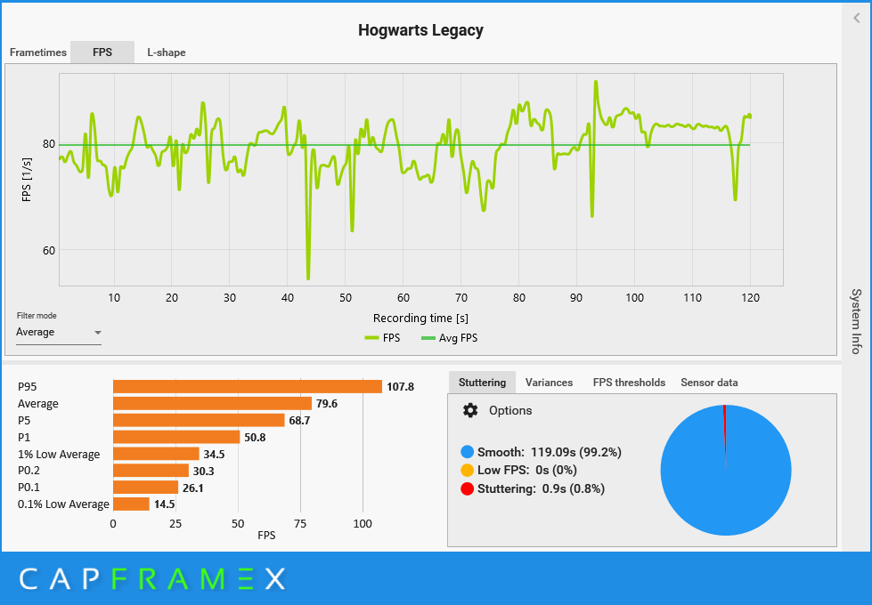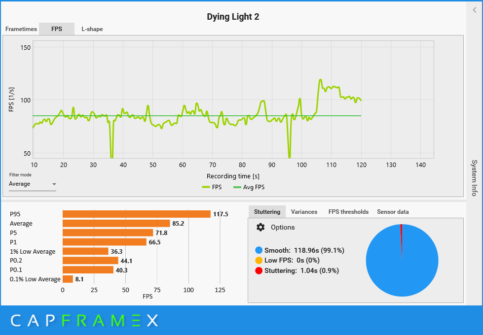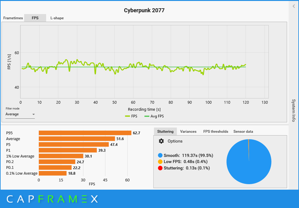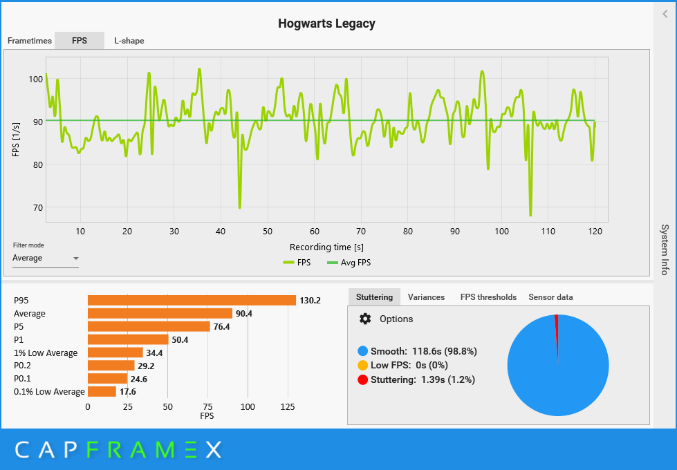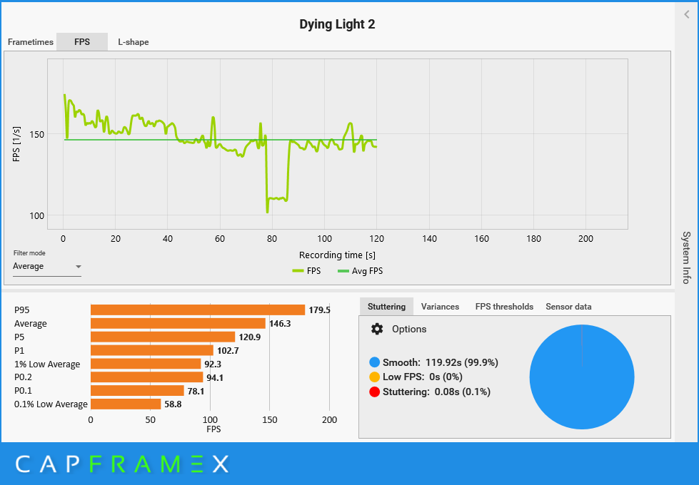 Funkcja DLSS 3 dopiero wkracza na salony, ale jest już dostępna w ponad 30 grach. Pełną listę możecie znaleźć tutaj. Spośród nich wybrałem pięć gier AAA tak, aby każda z nich miała inną specyfikę. Są nimi: Cyberpunk 2077, Dying Light 2, Forza Horizon 5, Hogwarts Legacy i Wiedźmin: Dziki Gon. W każdej z gier mierzyłem liczbę wyświetlanych klatek w 120 sekundowym przedziale, identycznych warunkach i ustawieniach, ale ze zmianą jedynie ustawień trybu DLSS. Skorzystałem z programu CapFrameX.