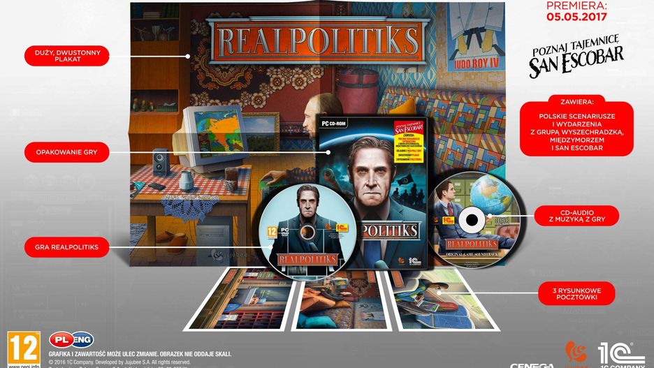 Rok temu o tej porze pisałem Nie wiem czy Demokracja 3 to dobra gra, ale polskie wydanie ma bezbłędne. Miałem oczywiście na myśli pudełkowe wydanie Demokracji 3, gdzie oprócz gry i standardowych gadżetów znalazło się też miejsce dla kilku niestandardowych. Na przykład wydanej w formie trzydziestopięciostronicowej książki konstytucji, niewydrukowanego wyroku trybunału konstytucyjnego i naklejki z napisami #najgorszysort, #dobrazmiana?. Szpilka wydawcy wbita w rząd bardzo mi się spodobała, ale po komentarzach było widać, że nie wszyscy podzielali mój entuzjazm. Co więc powiecie na San Escobar w Realpolitiks? Gra otrzymała dzisiaj wydanie pudełkowe, a także aktualizację zawierającą nowe mini scenariusze: