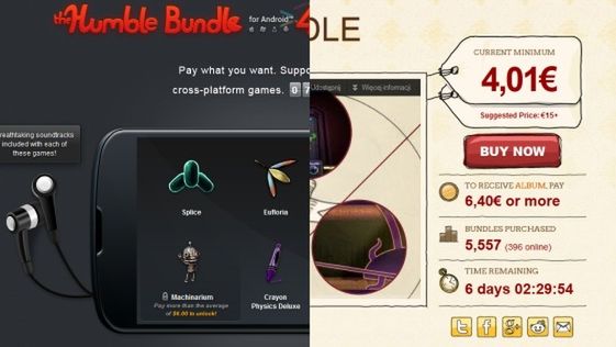 Najnowsza propozycja od Humble Bundle to już czwarta w historii paczka gier na Androida, choć warto zaznaczyć, że wszystkie produkcje można także po zakupie dostać na PC, również w formie kodu na Steam. W zestawie znajdują się: Eufloria, Splice, Waking Mars, Crayon Physics Deluxe i Superbrothers: Sword and Sworcery EP. Cena? Gry dostępne są w formie "płać ile chcesz", więc ustalacie ją sami. Ci, którzy zapłacą więcej, niż wynosi średnia wpłata (w tym momenie - 6 dolarów), dostaną także Machinarium.