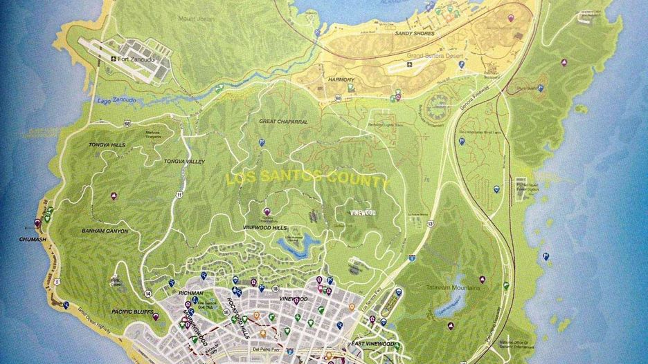 Wirtualne Los Santos zdradziło swoje tajemnice przed premierą za sprawą poradnika do gry, do którego ktoś dotarł wcześniej niż zakładał plan. Oczywiście mapa została już gruntownie przeanalizowana i zapewne niejeden fan przystąpi do zabawy jeżdżąc po mieście i bezdrożach na pamięć.