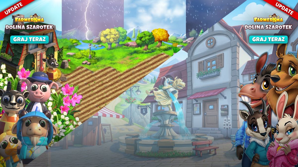 Plac wiejski Farmerama to serce każdej górskiej wioski, a Dolina Szarotek nie jest wyjątkiem. Alicja Racica uwielbia spotykać się tam ze swoimi przyjaciółmi. Dołącz do nich! Poznaj te barwne postacie, dowiedz się czegoś o ekscentrycznych mieszkańcach Doliny Szarotek i pomóż im, wypełniając ciekawe misje pełne niezwykłych nagród.