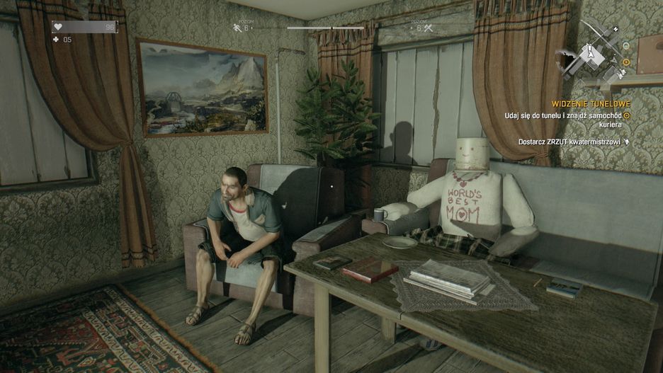 Inwentarz to słabsza część gry - jest mało przyjazna i intuicyjna. No i schowana w menu, a szkoda, bo gra będąca survivalem powinna oferować opcję zmiany ekwipunku w czasie rzeczywistym, z wiszącą w powietrzu groźbą ataku ze strony przeciwnika (mówię tu o dłuższym grzebaniu i wyborze broni, bo do kółka z czterema przedmiotami mamy dostęp natychmiastowy). To samo dotyczy tworzenia swoich przedmiotów. DL kładzie duży nacisk na zbieranie fantów ze skrzyń, pudeł i zwłok, a następnie np. zamienianie alkoholu i gazy w apteczki. Plany na kolejne przedmioty bywają nagrodą za wykonane misje poboczne i dodatkowe wyzwania. Sidequestów jest zatrzęsienie, szkoda tylko, że nie są tak ciekawe jak te główne, fabularne. Zazwyczaj każą nam ganiać po mieście, włączać różne urządzenia lub znaleźć coś, co nasz zleceniodawca zgubił. Pewna pani wysłała mnie do szkoły po kredki dla dzieci, za co dostałem bodaj 1000 dolarów. Mam wrażenie, że Bambino podrożały przez lata.