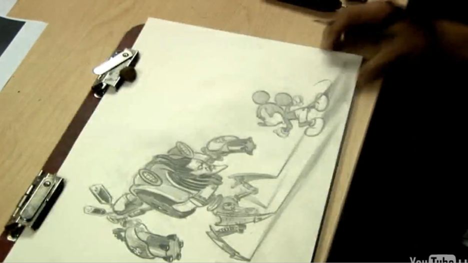 Skoro już cała drama z wyłącznością Epic Mickey na Wii już minęła, czas zaprezentować pierwszy szkic koncepcyjny z gry. Ponieważ nawet na zdrowym przyspieszeniu 30 minut pracy zostało skompresowanych do 3 min, złapaliśmy klatkę z finalnym efektem, którą zamieszczamy powyżej. Jeżeli zaś zdecydujecie się obejrzeć cały materiał wideo, na którym jeden z artystów szkicuje walkę Mikiego z Beetleworxem, to będziecie mogli przy okazji posłuchać jednego z kawałków, które pojawią się w grze.