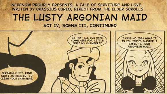 Podróżując po świecie Skyrim (a wcześniej po Morrowind i Oblivion) zapewne trafiliście na jeden z dwóch woluminów "Pełnej wigorulubieżnej argoniańskiej pokojówki". W Morrowind można było nawet spotkać autora tych dramatów, samego Crassiusa Curio, który stworzył bezwstydne historie o polerowaniu włóczni i pieczeniu chleba.