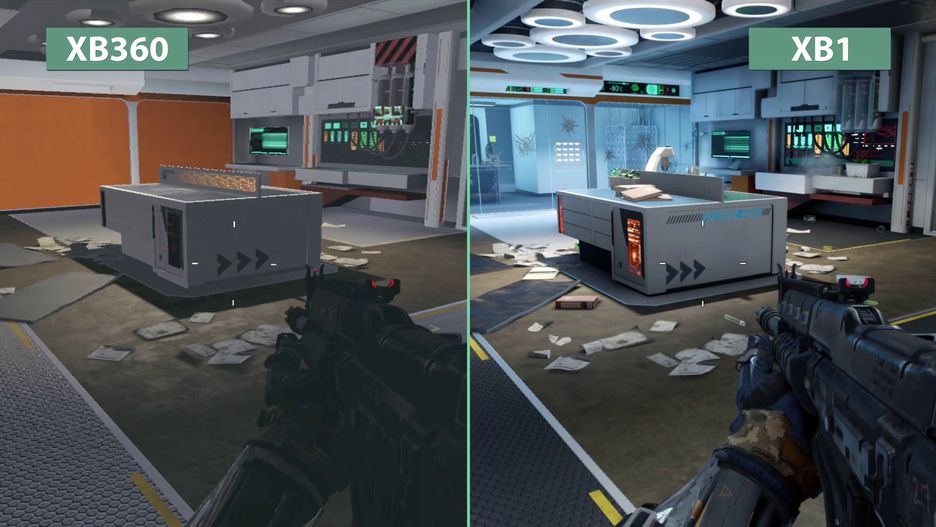Oczywiście porównywane są te same miejsca w mapach multiplayerowych, bo jak wiecie fabularnej kampanii na Xboksie 360 i PS3 nie uświadczymy.