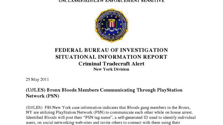Serwis Public Intelligence opublikował notatkę operacyjną FBI z której wynika, że członkowie amerykańskiego gangu Bloods wykorzystują PlayStation Network jako środek łączności.