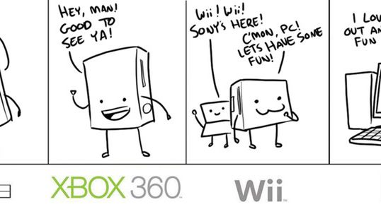 Jej, gdyby świat był tak idealny, jak ten przedstawiony na załączonych obrazkach! Porządek w komentarzach by był, nikt nie musiałby użerać się z ograniczonymi fanbojami. Niestety aż tak różowo w życiu nigdy nie będzie, ale nie zmienia to faktu, że naprawdę koniecznie musicie zobaczyć pogodzone za sobą wszystkie konsole tej generacji, te duże, jak i te małe. Niesamowicie pozytywna energia bije z tych prostych grafik. Gorąco polecam, mnie szczególnie rozczulił obrazek z Dreamcastem.