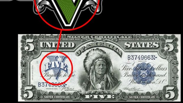 To waluta używana na terytorium USA między 1878 a 1964 rokiem (zresztą, ciągle jest legalnym środkiem płatniczym, tylko już nie jest emitowana). A jeśli interesuje Was, kim jest przedstawiony tam mężczyzna, to jest to Bięgnąca Antylopa, jeden z tych Indian, którzy opowiadali się nie za wojną, ale porozumieniem ze Stanami. Co to znaczy w kontekście GTA V, szczerze mówiąc, nie mam pojęcia. Podejrzewam, że nic. Ale kto wie...