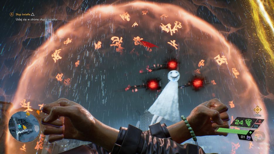 Oczywiście starcia ze straszydłami nie są jedynym momentem, gdy kreatywny duch odpowiedzialnych za kontroler inżynierów z PlayStation nawiedza wirtualne Tokio. Ba, on nawiedza je praktycznie cały czas – bo DualSense ciągle na coś reaguje. Praktycznie wszystkie mechaniki: wsysanie dusz do lalek, korzystanie z telefonu, podciąganie się na linie – angażują nasz zmysł dotyku. A do tego bardzo często pada tu deszcz, co również możemy odczuć na własnej skórze.