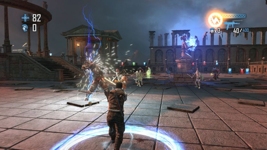 Ci ostatni wzięci są z greckiej mitologii i sprawiają, że droga z piekła do Olimpu wcale nie jest monotonna. W God Mode nie ma żadnego systemu osłon, więc rozgrywka polega na strzelaniu do wszystkiego co się rusza. Wrogowie dostosowują się do tego założenia. Większość z nich potrafi tylko nacierać przed siebie, ale bez odpowiedniej porcji łatwego do rozniesienia mięsa armatniego taka gra nie może się obyć. Nie brakuje też twardszych kozaków, jak Minotaury czy Cyklopy (wiecie, żeby celować w oko, prawda?), atakujących z powietrza harpii czy magów potrafiących zamrażać, podpalać i zatruwać. Wielkiej taktyki stosować nie trzeba, ale zamiast nużyć, kolejne fale przeciwników zmuszają do ustalenia pierwszeństwa celów i połączenia sił graczy, gdy na drodze staje coś większego. Są też bossowie, tacy z paskiem energii i wrednymi atakami.