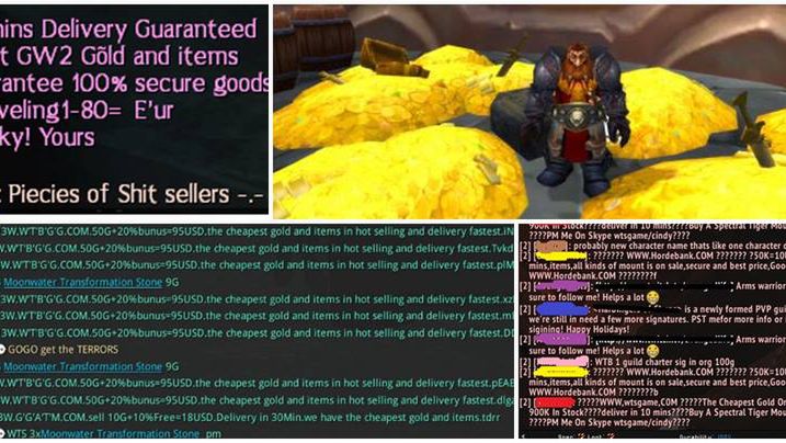 Jak gold selling niszczy przyjemność z gry Poza wzrostem cen proceder ten bardzo mocno wykorzystuje wszystkie złoża w grze. Często blokują ważne miejscówki, z dobrą szansą na znalezienie wartościowego przedmiotu. Bardzo mocno psuje klimat gry widok botów, biegających i zarabiających przez cały czas w tym samym miejscu. No i spam. To chyba najgorsze kiedy wchodzimy do swojej ulubionej produkcji i najpierw przez kilka minut musimy blokować wszystkie informacje o tym, że ktoś chce nam coś sprzedać. Niestety pozostajemy bardzo często bierni wobec takiej sytuacji, ponieważ autorzy nie dają nam narzędzi. W niektórych produkcjach jednak istnieje możliwość raportowania i blokowania od razu z chatu, lub w inny łatwy sposób.