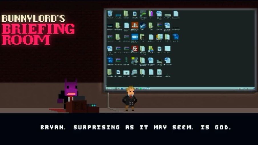Henderson otrzymał jednak inną propozycję ze świata gier - zostania "bogiem" w dwuwymiarowym Not a Hero od studia Devolver. Zgodził się, czego efektem jest jego występ w grze.