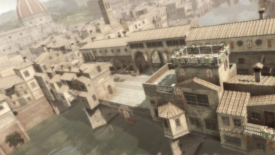 ... gdzie Ponte Vecchio, a gdzie siedziba naszego rodu. Trochę ściemniona, ponieważ kamienica występująca w grze jako Palazzo Auditore....