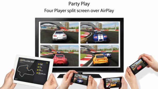 Twórcy Real Racing 2 z Firemint, studia, którego właścicielem jest EA, zapowiedzieli nową aktualizację do gry, która umożliwi granie na TV czterem osobom wyposażonym w iPady 2 lub iPhone'y 4S poprzez AirPlay: