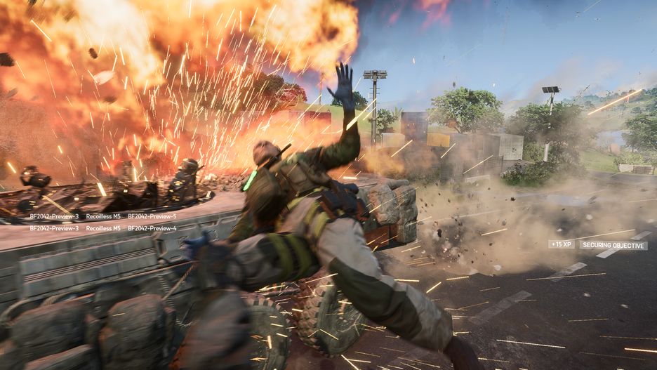 Wybrałem ponownie żołnierza i wróciłem na pole bitwy. Teraz całkowicie skupiony na odbijaniu kolejnych celów. A tych było sporo. Wraz z innymi dziennikarzy graliśmy bowiem w trybie "Conquest" na mapie Orbital. I już po chwili dało się odczuć ducha Battelfielda 3 i 4. Ale w mocno uwspółcześnionej oprawie. 2042 na szerokich kadrach potrafi zachwycić. Choć ciekaw jestem, jak będzie radził sobie na konsolach nowej generacji.