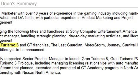 Na profilu Linkedin związanego z Sony Briana Dunna pojawiła się ciekawa informacja związana z jego dotychczasową pracą. Spójrzcie dokładnie, a zobaczycie, że pośród wymienionych tytułów jest...Gran Turismo 6. Oznaczałoby to, że trwają już prace nad kontynuacją popularnej (a dla niektórych kultowej) wyścigowej serii.
