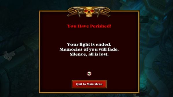 Śmierć: na 12 poziomie doświadczenia, podczas walki z bossem, z którym wcześniej na dystans nie miałem żadnego problemu, a teraz w starciu bezpośrednim, w otoczeniu jego pomocników, nie dałem rady.