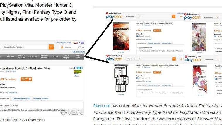 Redaktor Eurogamera, Robert Purchese był pierwszym, który opublikował historię o wycieku wpisów z nowymi grami na Vitę w sklepie Play.com. Obrazek dostał od czytelnika, który znalazł go na forum, gdzie wrzucił go inny czytelnik, który tylko znalazł go na forum Something Awful. Jednak do faktu, że nie zrobił screena sam, a dostał go mailem, przyznał się dopiero później - w komentarzach.