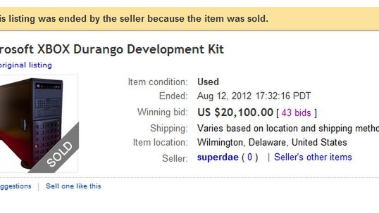 Sprzedawcą był niejaki "superdae", który w zeszłym tygodniu udostępnił zdjęcie przedstawiające to, co widzi nowy model Kinecta i podobno miało być potwierdzone, że rzeczywiście posiadał Durango. Aukcja ograniczyła się do jednej fotografii czegoś, co wygląda jak zwyczajny komputer i tytułu "Microsoft XBOX Durango Development Kit".
